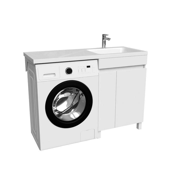 Тумба с умывальником напольная для стиральной машины с дверцами, 120 см, правая, белая, Optima Home в г.Челябинск