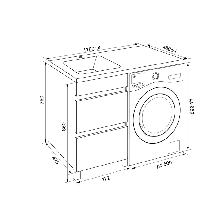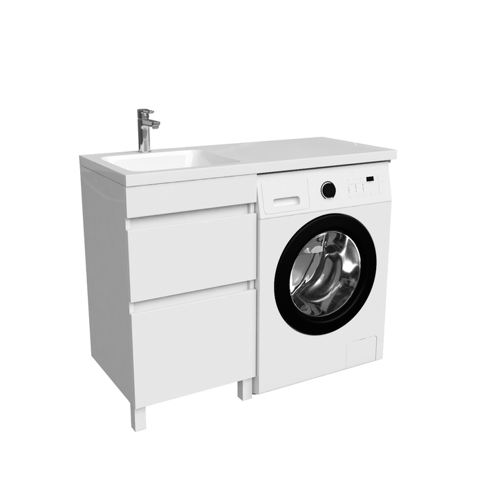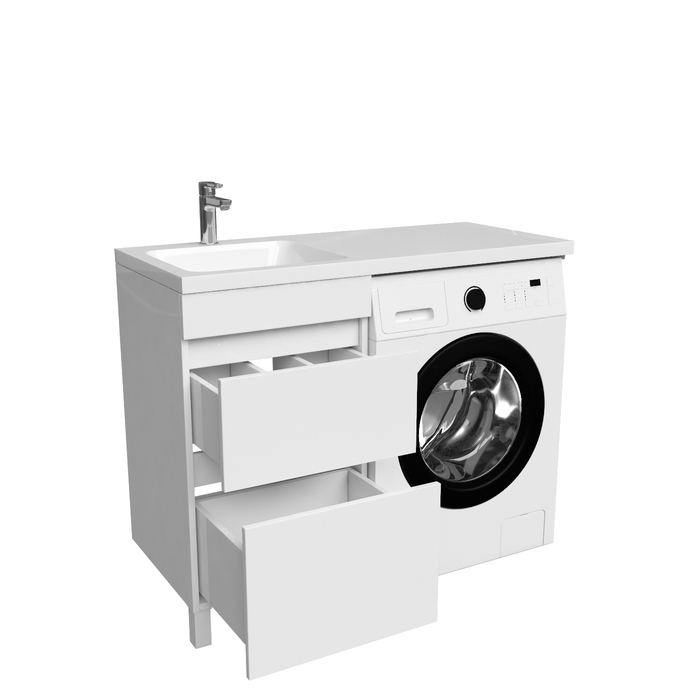 Тумба с умывальником напольная для стиральной машины с ящиками, 110 см, левая, белая, Optima Home. в г.Челябинск