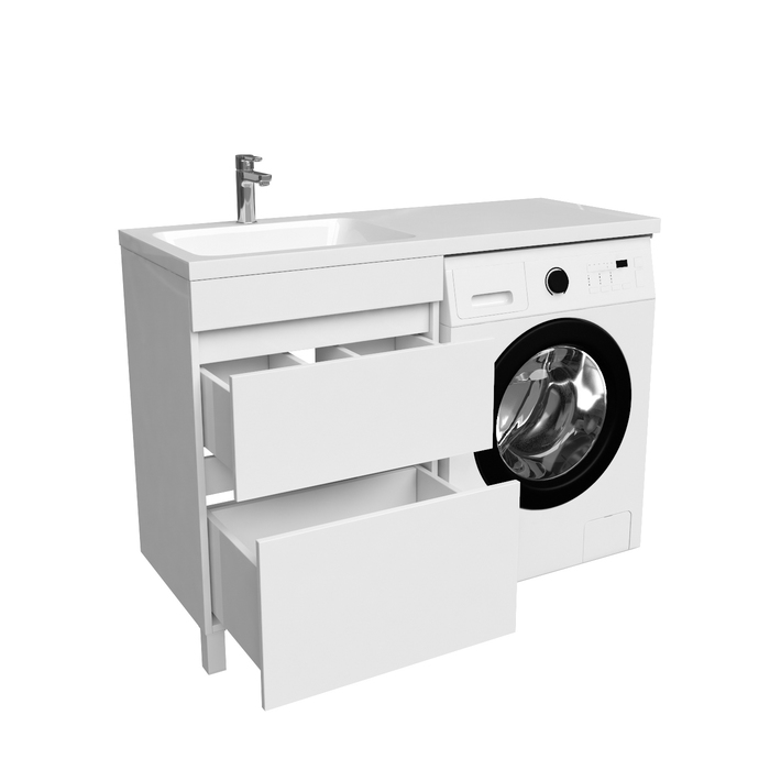 Тумба с умывальником напольная для стиральной машины с ящиками, 120 см, левая, белая, Optima Home. в г.Челябинск