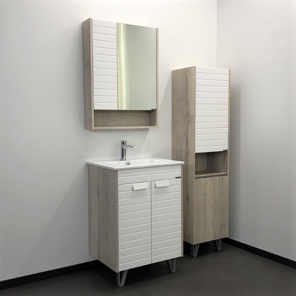 Купить Тумба-умывальник Клеон-60Н белый/дуб дымчатый с раковиной 9060M артикул: 190179 в интернет-магазине ESMAG - Челябинск.