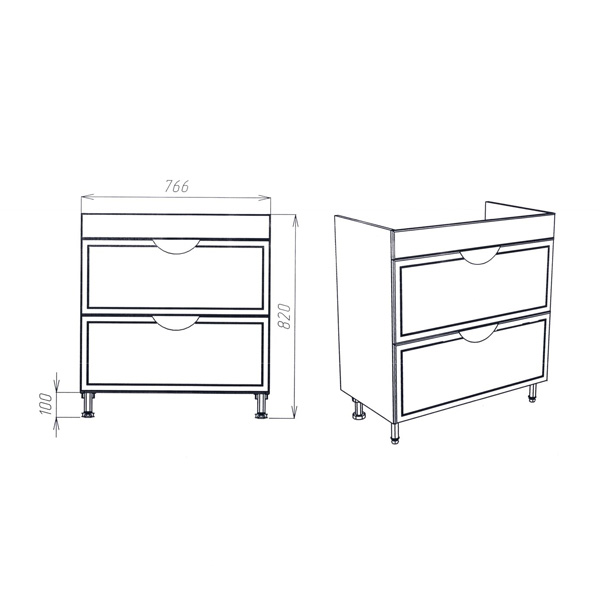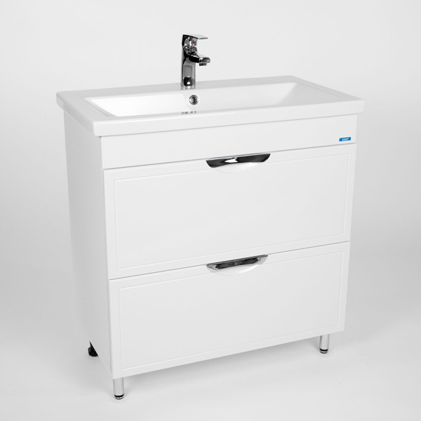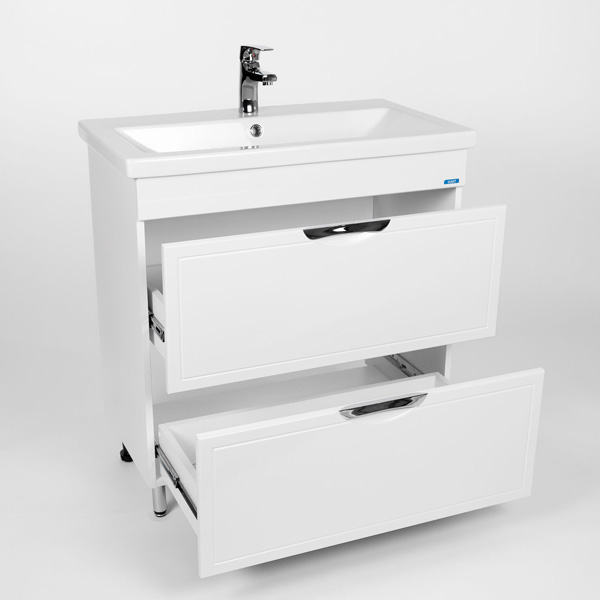 Напольная тумба-умывальник для ванной комнаты Виант Лима 80 с двумя выдвижными ящиками.
