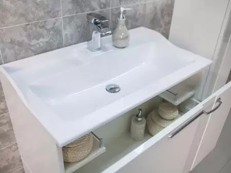 Для ценителей максимального комфорта и лаконичного дизайна, компания Акватон разработала коллекцию Марко 80. Дизайн лицевой фурнитуры, тумбы-умывальника Марко 80, подчеркивают стеклянные вставки, установленные на фасадах. Тумба дополнена раковиной из литьевого мрамора. Ящик тумбы снабжен доводчиками, внутри тумбы две небольшие полочки. Кроме стандартного подключения водоснабжения и канализации (из стены), предусмотрена возможность подключения труб снизу.