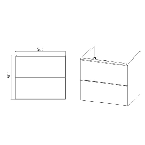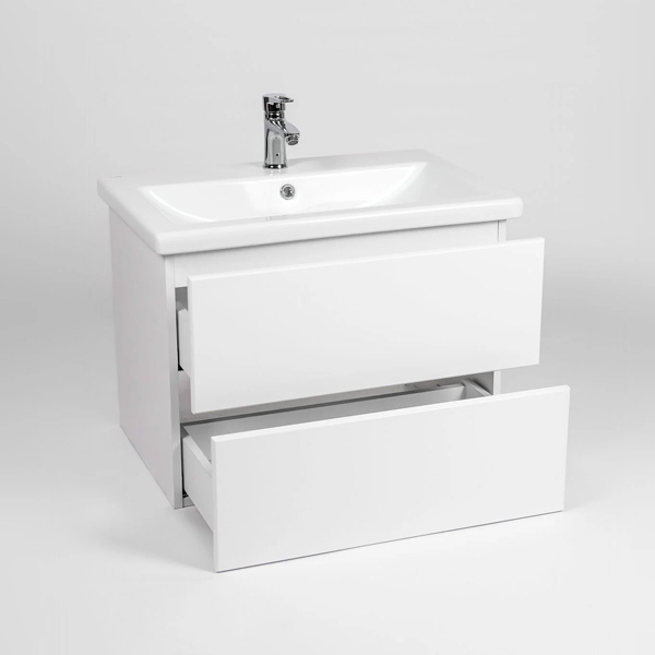 Подвесная тумба-умывальник Виант София 60 с двумя выдвижными ящиками укомплектована керамической раковиной Cersanit Como 60