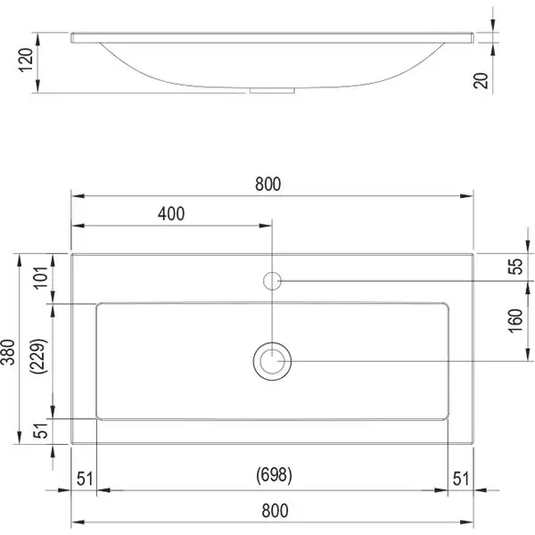 Купить Умывальник Clear 800 белый с отверстиями XJJ01180000 артикул: 127533 в интернет-магазине ESMAG - Челябинск.