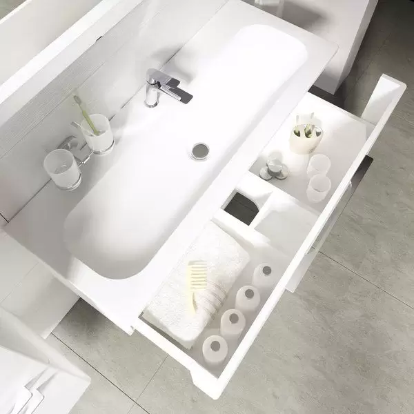 Мебель Ring отличается от другой современной продукции своими горизонтальными линиями, которые гармонизируют ванную комнату и обеспечивают максимум свободного пространства для использования.