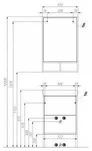 - Оснащение - зеркало с полочкой, крепления