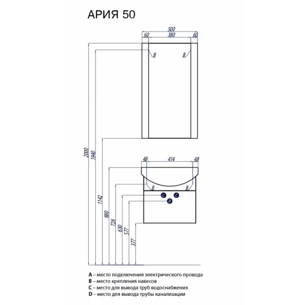 - Модель АРИЯ 50 предназначена для небольших ванных комнат.