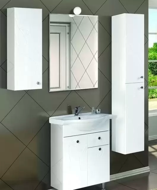 Фасады мебели коллекции "Лиана" украшают изящные вьющиеся линии - они привнесут в Вашу ванную комнату природные мотивы.