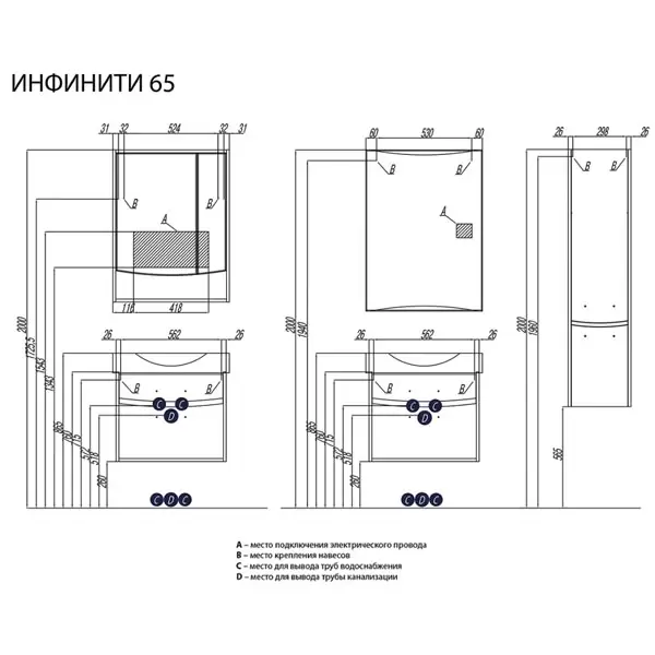 ИНФИНИТИ – стильная лаконичная модель, которая прекрасно впишется в ванную комнату любого размера. В подвесной тумбе два ящика, фасадные линии которых повторяют чашу раковины и лицевой фурнитуры. По желанию тумбу можно комплектовать вместительным зеркальным шкафом или изящным зеркалом. Зеркало снабжено led подсветкой и выключателем. За фигурным фасадом зеркального шкафа расположены, регулируемые по высоте, стеклянные полки. Все ящики снабжены системой плавного закрывания. Мебель украшают изящные ручки бельгийского производителя METAKOR.