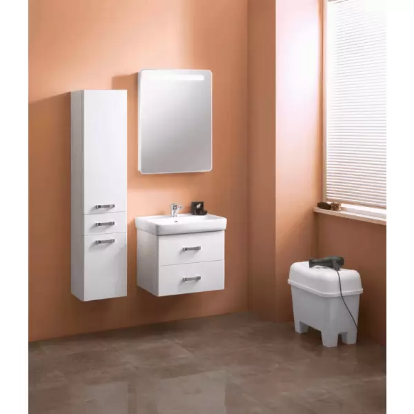 Стильная лаконичная модель, созданная для небольших ванных комнат. Зеркальный шкаф из набора шириной 60 см удачно вписывается и в этот размер, зрительно увеличивая пространство ванной комнаты. За зеркальной створкой располагаются две стеклянные полки и светильник, который виден сквозь гравировку. В шкафчике есть два нижних ящика с декоративной отделкой, а, фасад так же как и у зеркала, установлен на мощные петли со встроенным амортизатором – при закрывании будет слышно удара, даже если сильно толкнуть дверь. Модель выпускается на рынок в 5-ти цветах в глянцевой отделке: белый, темный бордо, капучино, темно-коричневый и черный глянец.