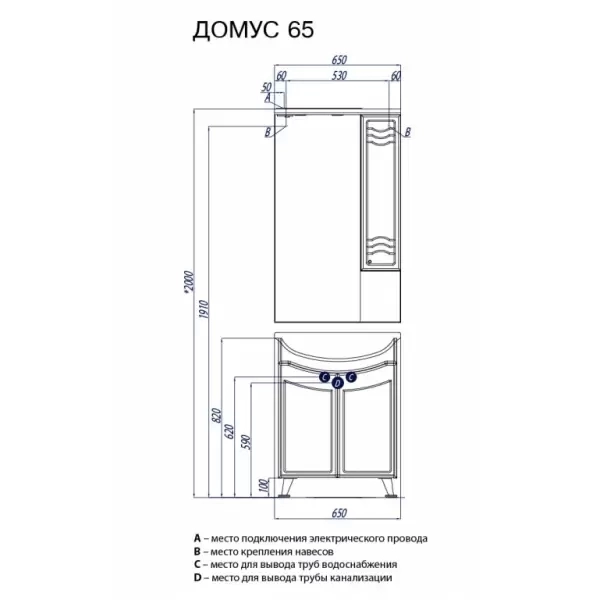 Купить Зеркало со шкафом Домус 65 82-2 (1103*650*166) правое 1A008202DO01R артикул: 138046 в интернет-магазине ESMAG - Челябинск.