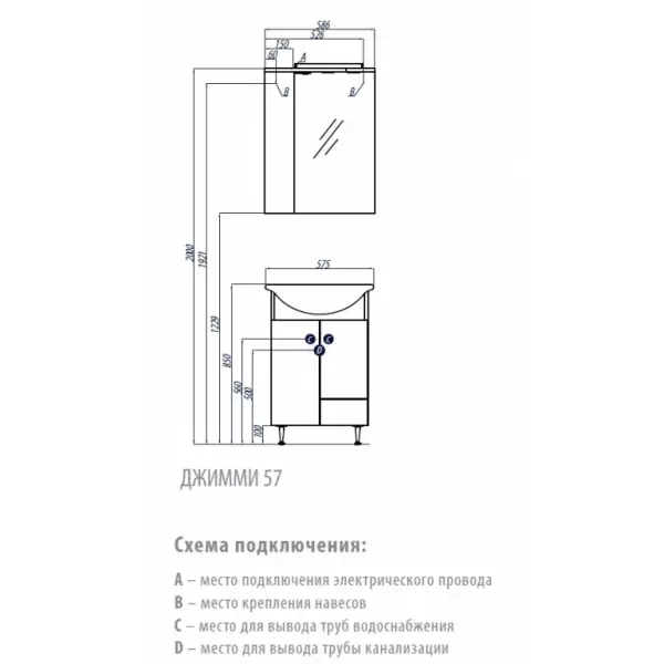 Эта коллекция для небольших ванных комнат выполнена в строгом традиционном стиле и белом цвете. В тумбе за распашными фасадами установлена регулируемая по высоте полка. В зеркале предусмотрена верхняя панель с подсветкой, а за фасадом установлена полка. Тумба имеет 3 варианта исполнения, два из которых (ДЖИММИ 57 М и ДЖИММИ 57 У) — с распашными фасадами, отличающимися по форме, а также вариант с выдвижным ящиком внизу справа (ДЖИММИ 57). Все тумбы этой коллекции комплектуются регулируемыми по высоте ножками.