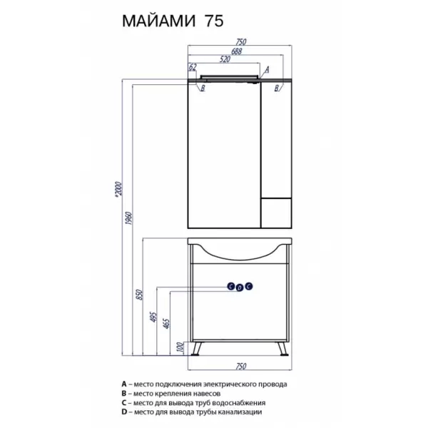 Купить Зеркало со шкафом Майами 75 475-2 (правый) 1A047502MM01R артикул: 138111 в интернет-магазине ESMAG - Челябинск.