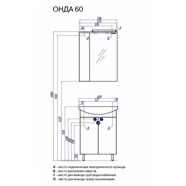 Купить Зеркало со шкафом Онда 98-2 (правый) (798*586*172) артикул: 138022 в интернет-магазине ESMAG - Челябинск.