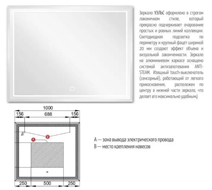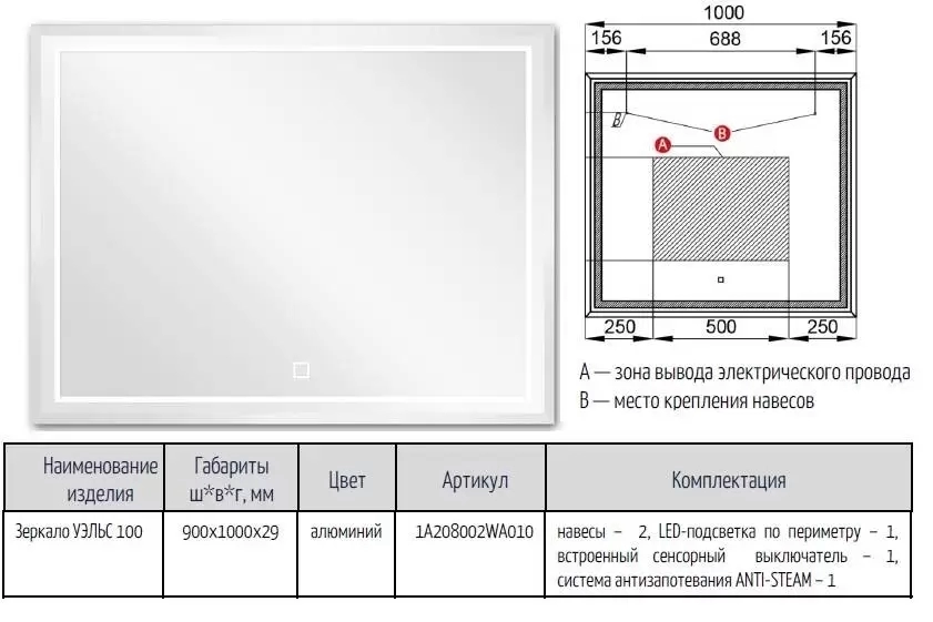 Купить Зеркало Уэльс 100 1A208002WA010 1000х900х30мм Акватон артикул: 148673 в интернет-магазине ESMAG - Челябинск.