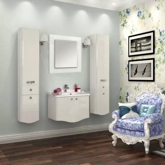 Прямоугольное зеркало шириной 65см с белым обрамлением зеркального полотна - декоративной гравировкой с характерными элементами неоклассики.