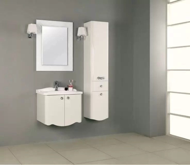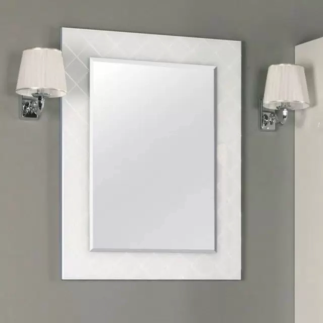 Прямоугольное зеркало шириной 75см с белым обрамлением зеркального полотна - декоративной гравировкой с характерными элементами неоклассики.