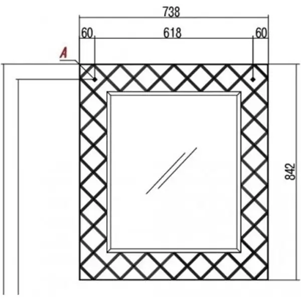 Прямоугольное зеркало шириной 75см с зеркальным обрамлением полотна - декоративной гравировкой с характерными элементами неоклассики.