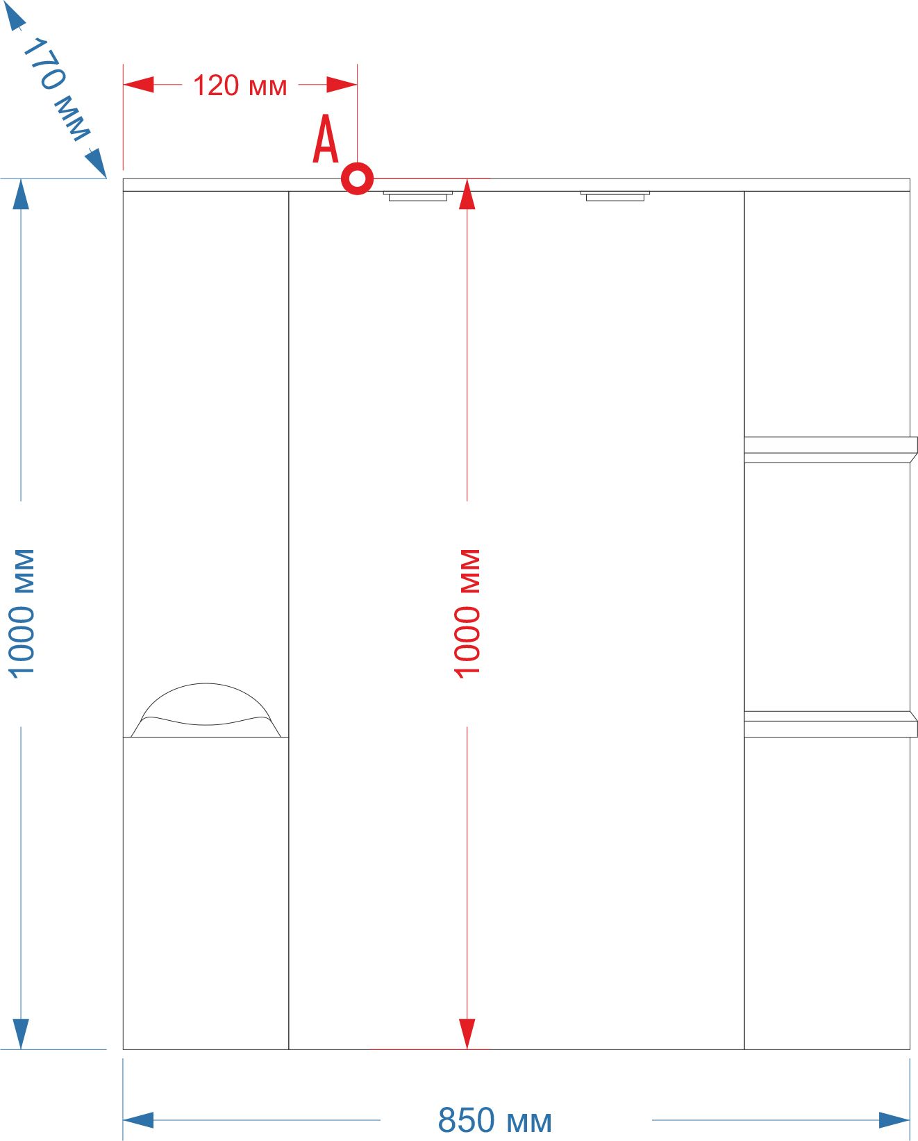 Зеркало Жасмин - 85 оснащено встроенной подсветкой, полочками и боковым шкафчиком.