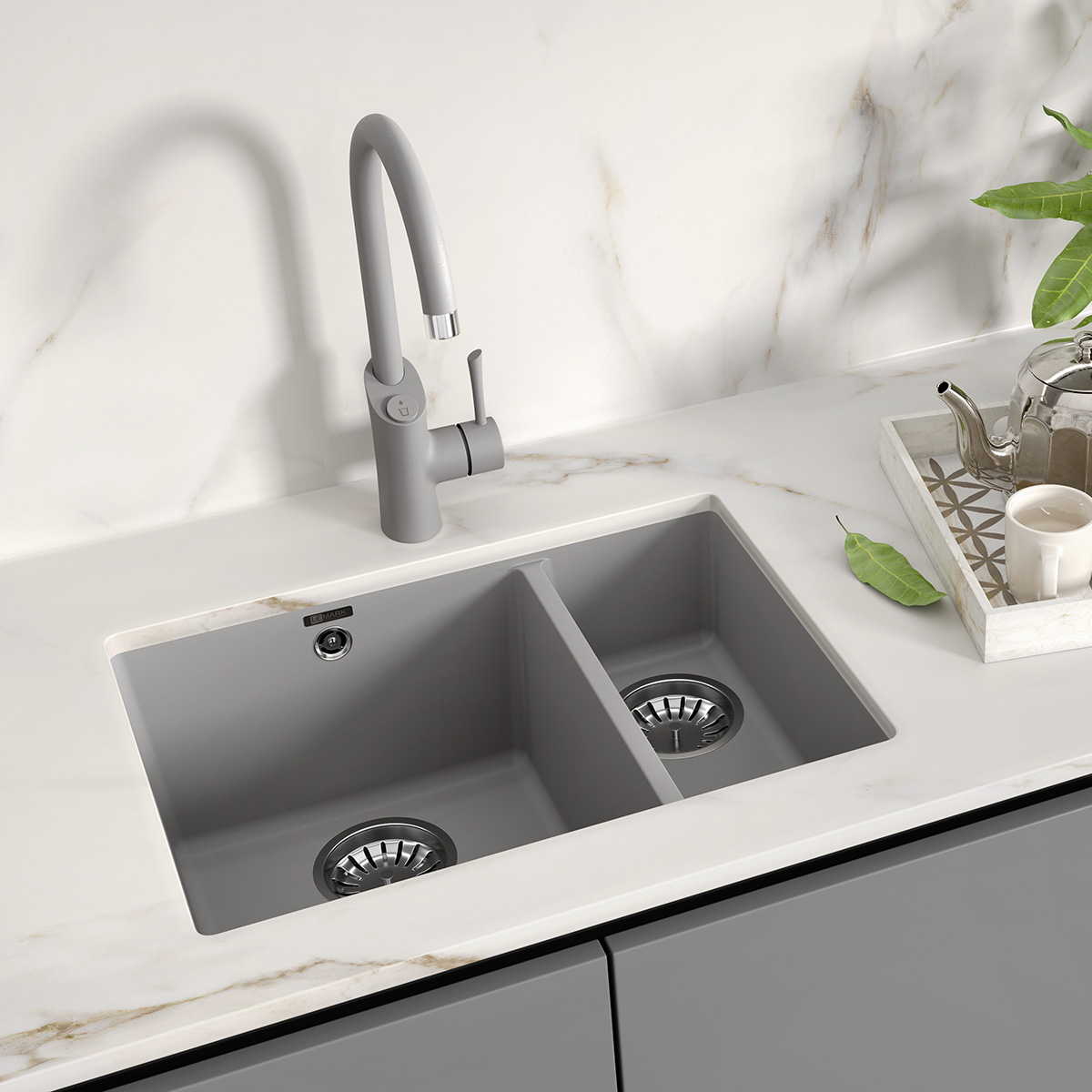 Основу материала моек из композитного материала (Кварцгранит) LEMARK составляют частицы кварца и гранита- 80% и полиэфирная смола- 20%