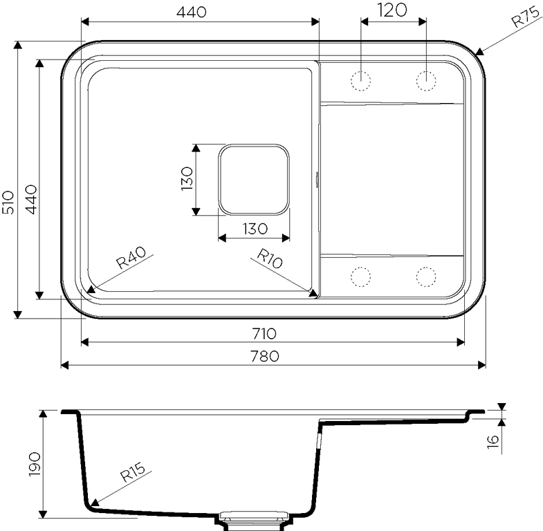 Размер мойки: 780x510