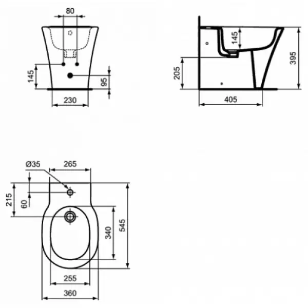 Биде напольное пристенное Коннект Эйр, белый IDEAL STANDARD E018001.