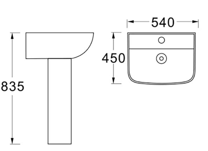 • Пьедестал, донный клапан и смеситель приобретаются отдельно