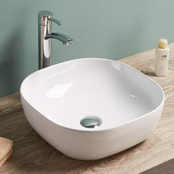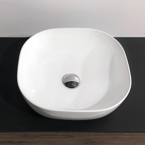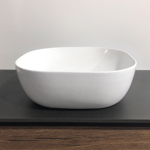 - Назначение: квадратный белый глянцевый мебельный умывальник для установки на тумбу или столешницу.