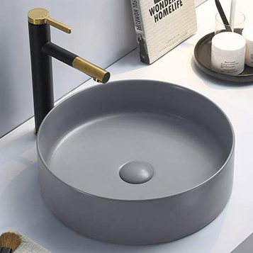 - Круглая накладная мебельная раковина-чаша Comforty 9110MH светло-серая матовая для установки на тумбу или столешницу.