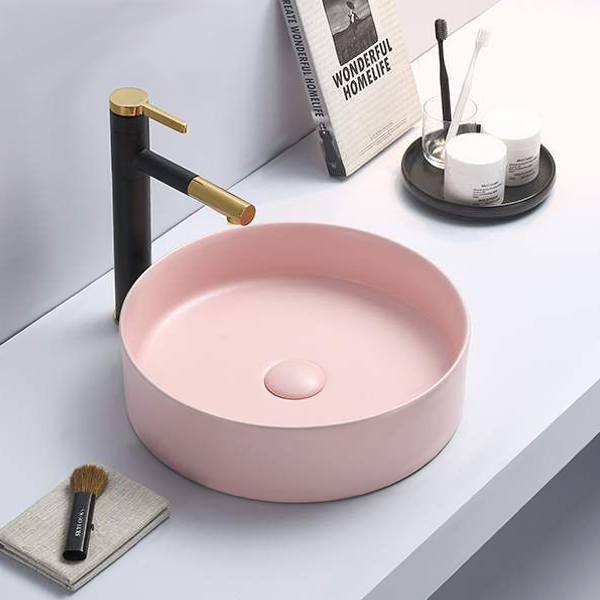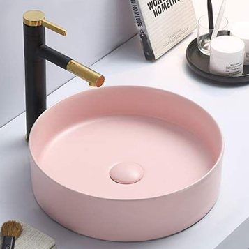 - Круглая накладная мебельная раковина-чаша Comforty 9110MP розовый матовый для установки на тумбу или столешницу.