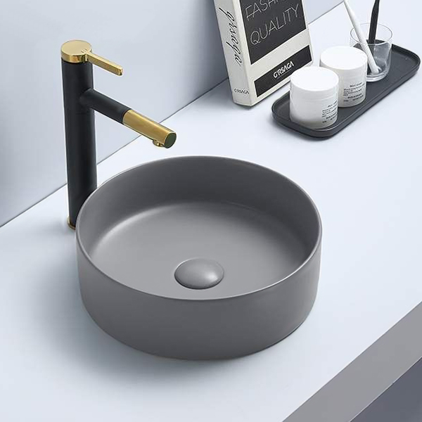 - Накладная круглая раковина чаша Comforty 9111MH светло-серый матовый для установки на тумбу или столешницу.