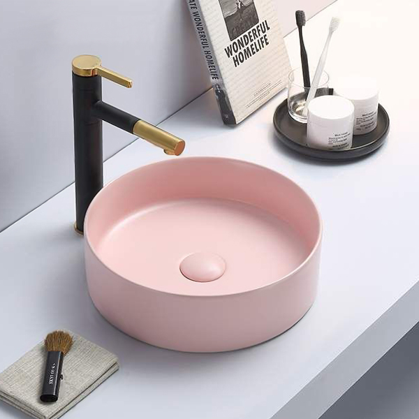 - Накладная круглая раковина чаша Comforty 9111MP розовая матовая для установки на тумбу или столешницу.