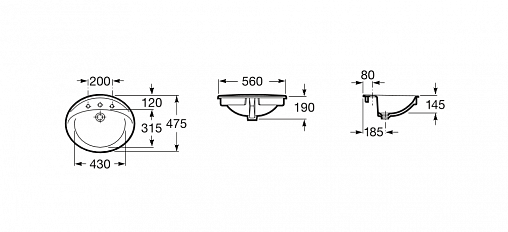Aloa страиваемая сверху раковина, санфарфор, с одним отверствием под смеситель