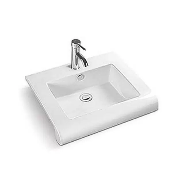 Раковина белого цвета, прямоугольной формы, по типу - полувстраиваемая, устанавливается на тумбу, с отверстием под смеситель, с отверстием под перелив. Страна производитель - Китай. Гарантия завода изготовителя - 1 год.