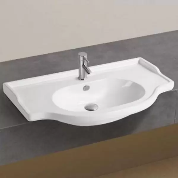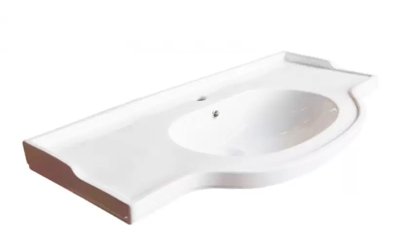 Раковина белого цвета, полукруглой формы, по типу - полувстраиваемая, устанавливается на тумбу, с отверстием под смеситель, с отверстием под перелив. Страна производитель - Китай. Гарантия завода изготовителя - 1 год.