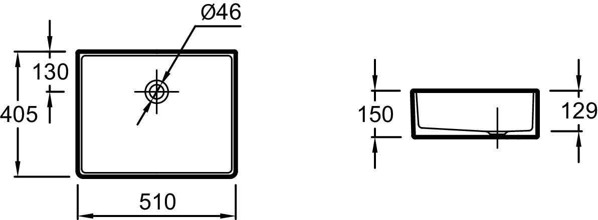 - Без отверстия для смесителя