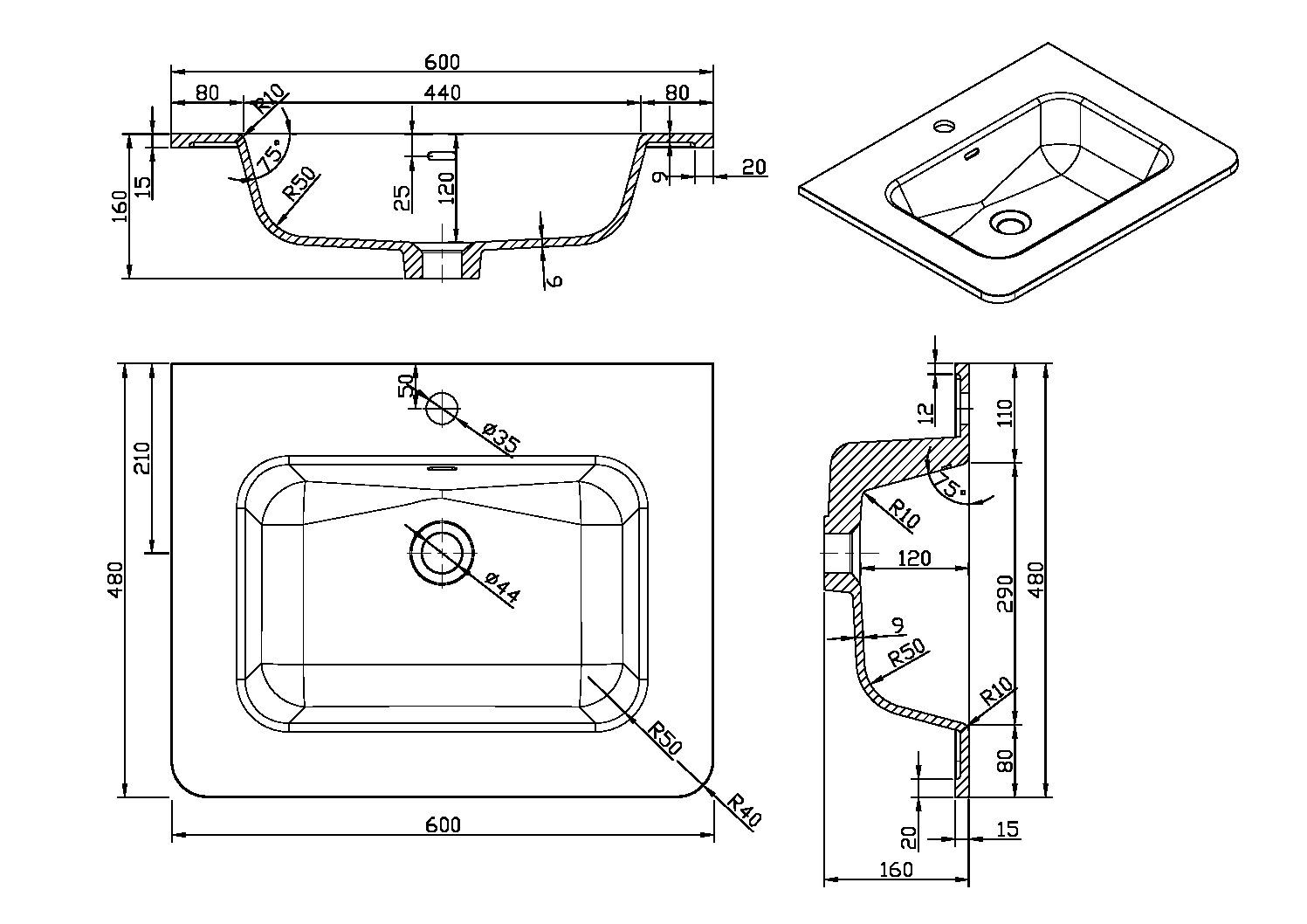 Купить Раковина из искусственного камня белый VCB-1A600W Vincea артикул: 221579 в интернет-магазине ESMAG - Челябинск.