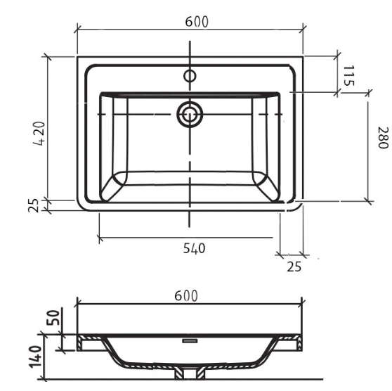 Раковина из искусственного мрамора, 600x420x140 ENERGIA-N EA-600-LVB BelBagno