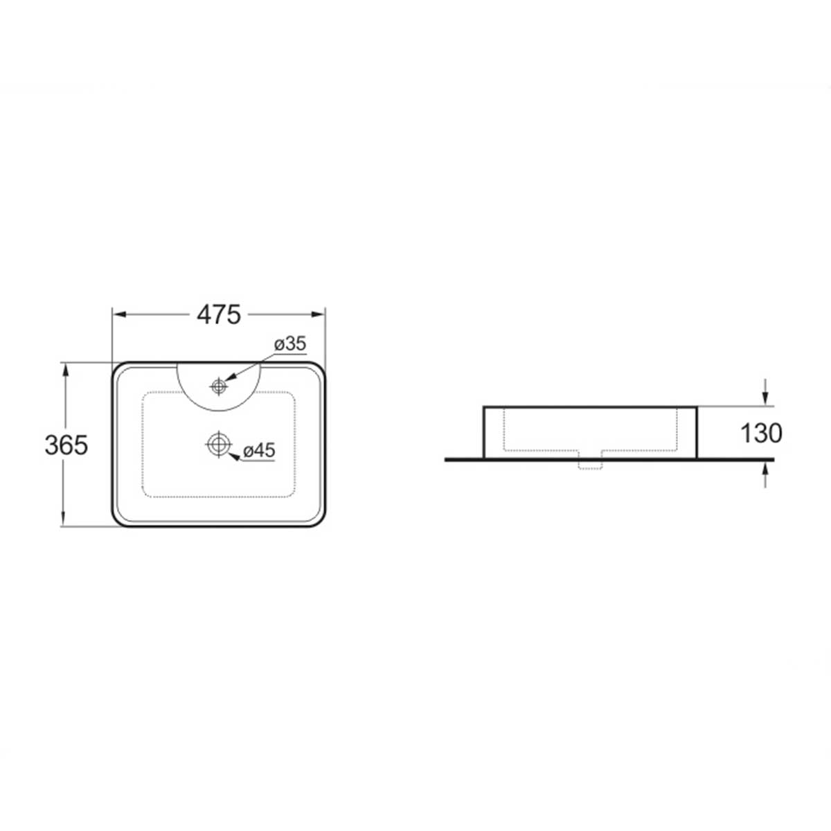 Купить Раковина накладная керамическая 475х365х130 белая VBS-127 Vincea артикул: 213856 в интернет-магазине ESMAG - Челябинск.