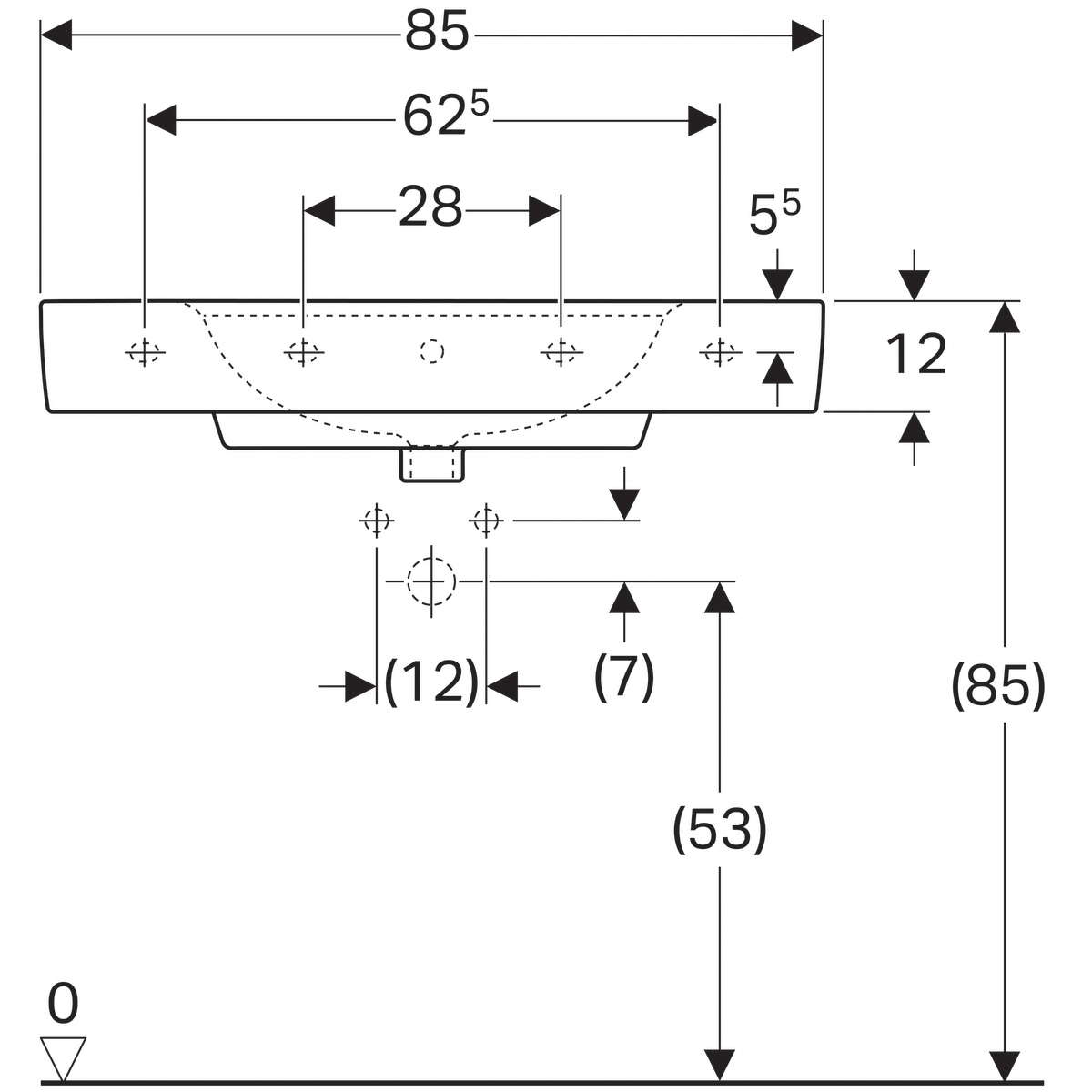 Купить Раковина с переливом Renova Nr. 1 Plan с отв. под смеситель 850х480 мм 122185000 артикул: 132068 в интернет-магазине ESMAG - Челябинск.