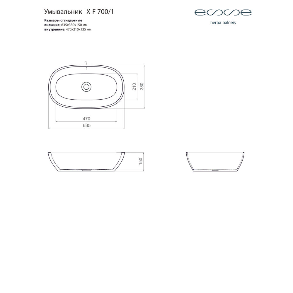 Купить Умывальник 635x380х150 X F 700/1 белый матовый артикул: 211999 в интернет-магазине ESMAG - Челябинск.