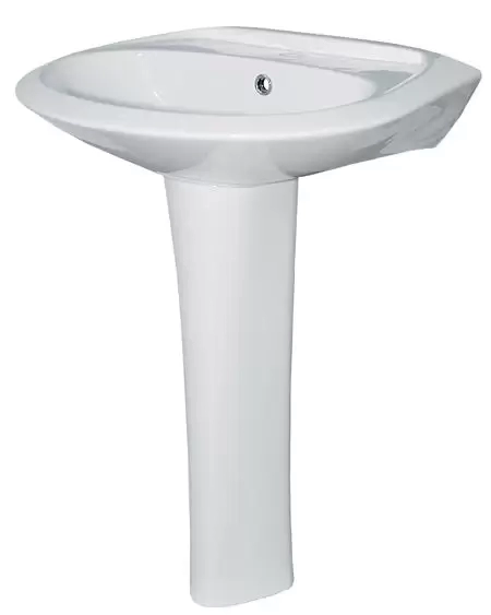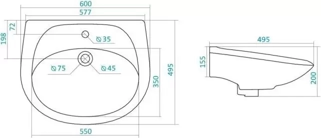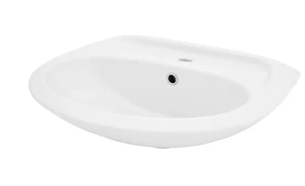 Умывальник Santek Бриз-60 с отверстием для смесителя, подвесной с возможностью установки на постамент. Он крепится с помощью специальных винтов к стене. Этот умывальник оснащен дополнительной защитой от перелива – хромированное кольцо вверху раковины. Если воды натекло слишком много, она вытекает через это кольцо, затем она попадает в сливную трубу.