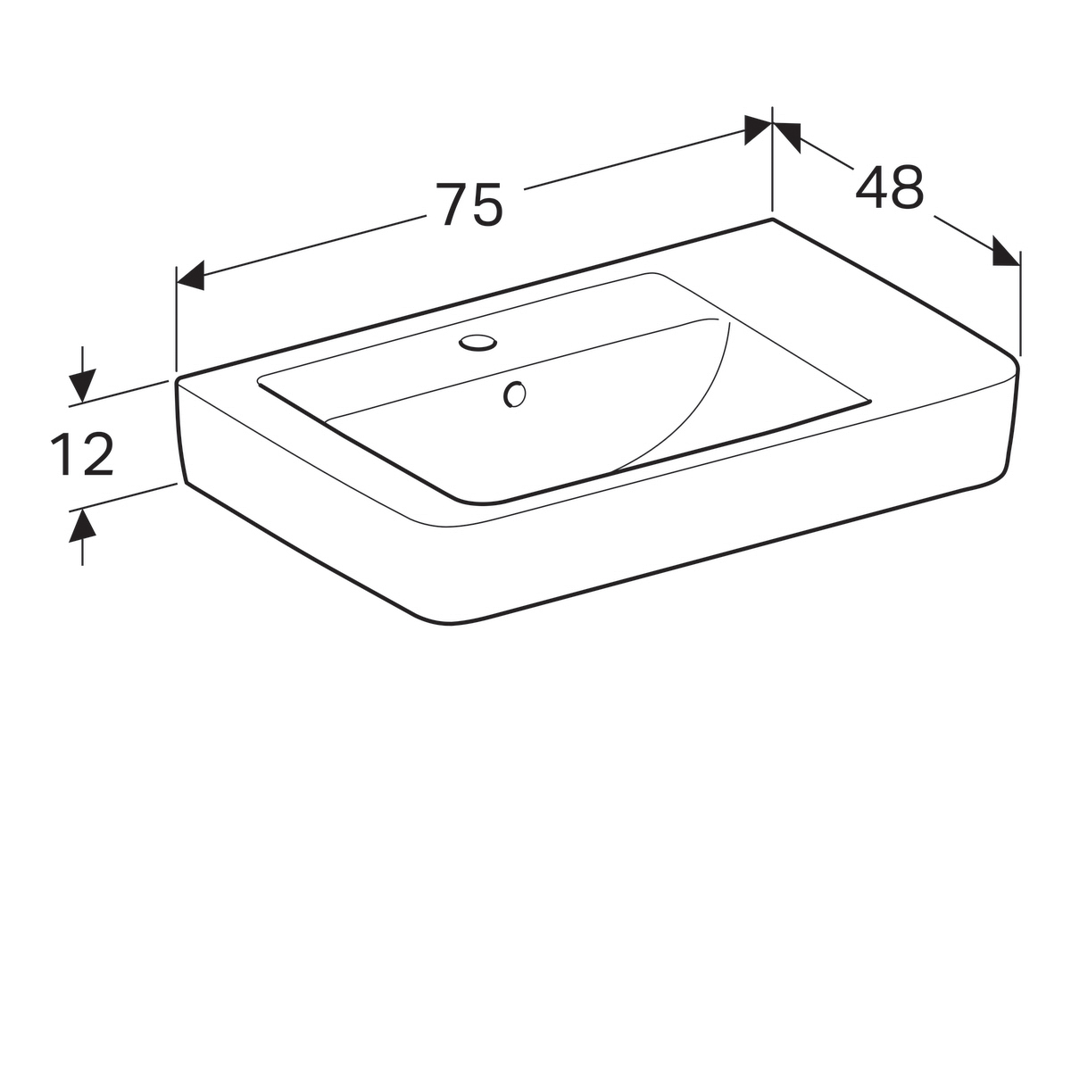 Умывальник RENOVA NR.1 PLAN 750х480, с полочкой справа 122180000.