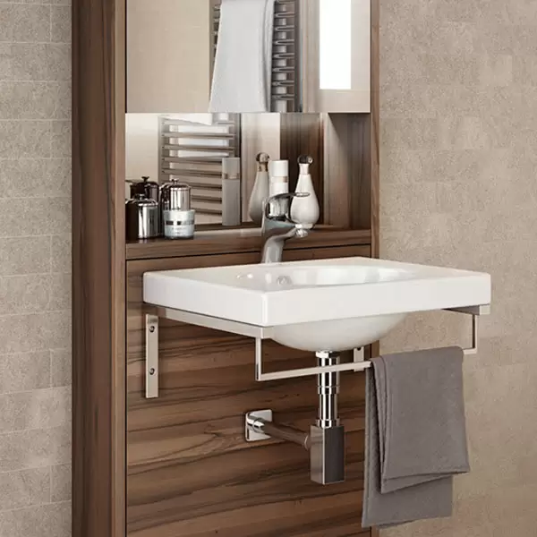 Комплектация: умывальник, кронштейн, крепления кронштейнов, полотенцедержатель, комплект крепления умывальника к стене.