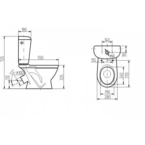 Унитаз компакт детский производства завода "Универсал" г. Новосибирск с цельнолитой полочкой, тарельчатый с косым выпуском, в комплекте с высоким бачком.