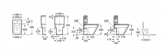 • Подвод воды: снизу бачка