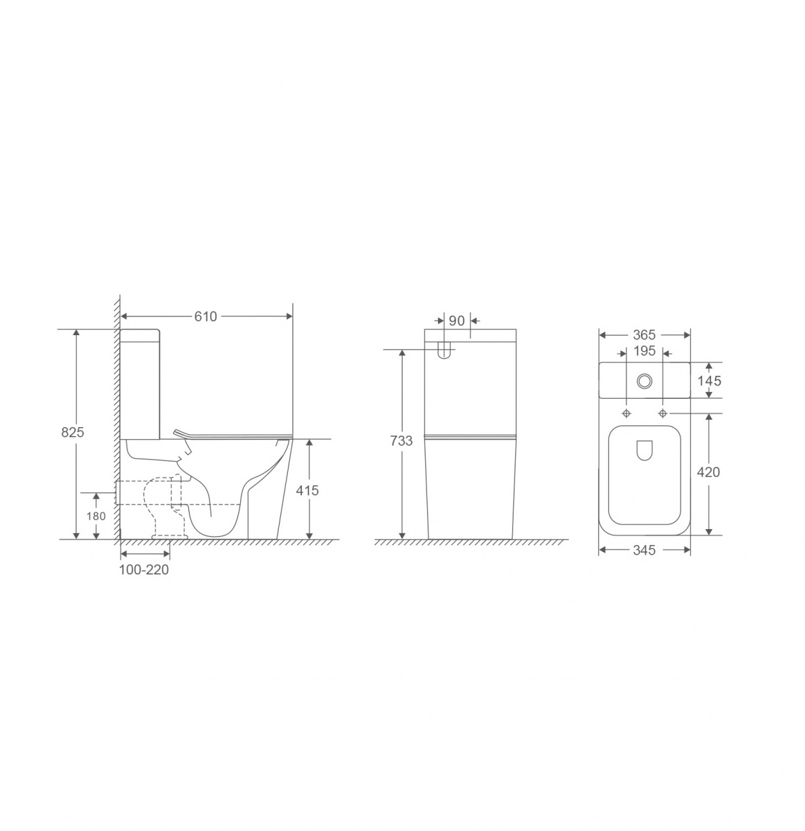 - Унитаз напольный с бачком и сиденьем в комплекте;