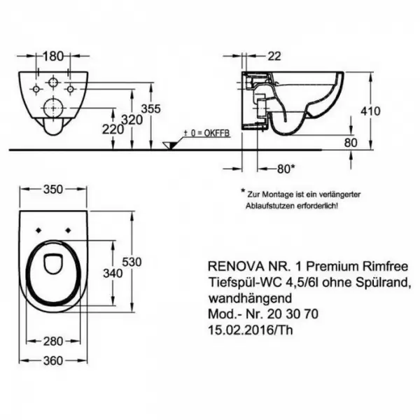 Купить Унитаз подвесной 45/6 л Renova Nr. 1 Premium Rimfree безободковый 203070000 артикул: 132062 в интернет-магазине ESMAG - Челябинск.