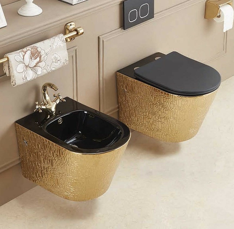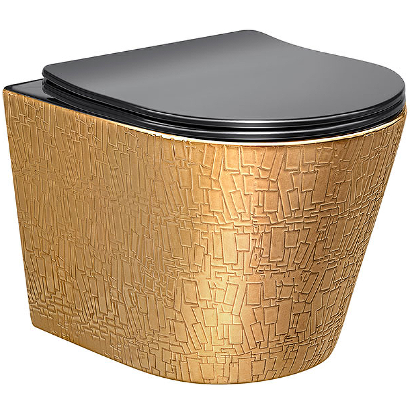 Окутайте свою ванную комнату роскошью с Унитазом подвесным безободковым в золотом и черном цвете Piatti VT1-11G1B Vincea! Сделайте заказ прямо сейчас на нашем сайте и превратите вашу ванную комнату в место блестящей изысканности!