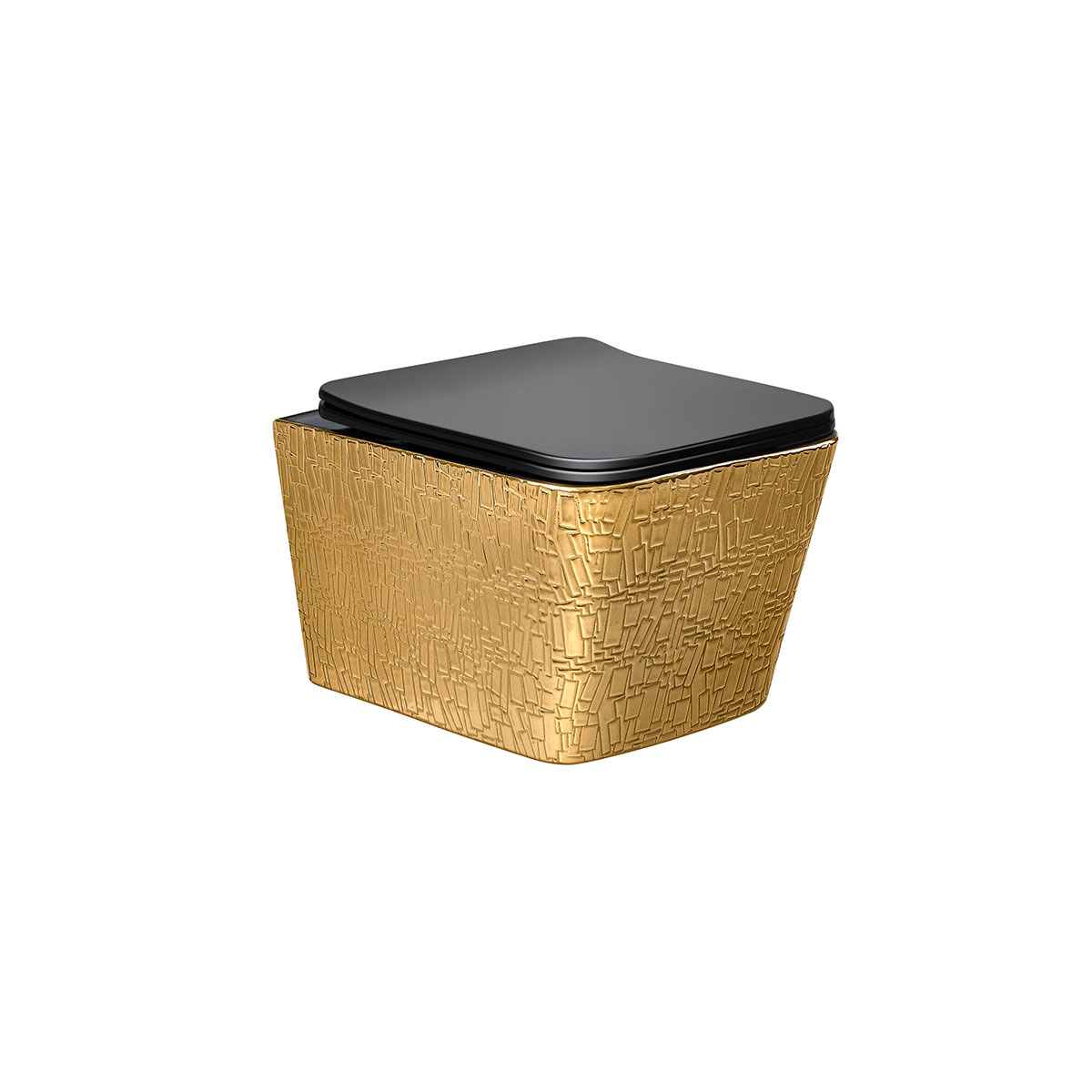 Унитаз подвесной безободковый Q-Line золото/черный сиденье ультратонкое soft-close VT1-12G1B Vincea в г.Челябинск